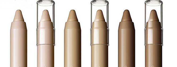 En respecto al color, prima lo explicado anteriormente sobre el fondo de maquillaje, y por supuesto que sea del mismo color que el fondo o si acaso un poco más claro. Así pues, como antes los colores a base del amarillo son los mejores para contrarrestar rojeces y el azulado de las ojeras.